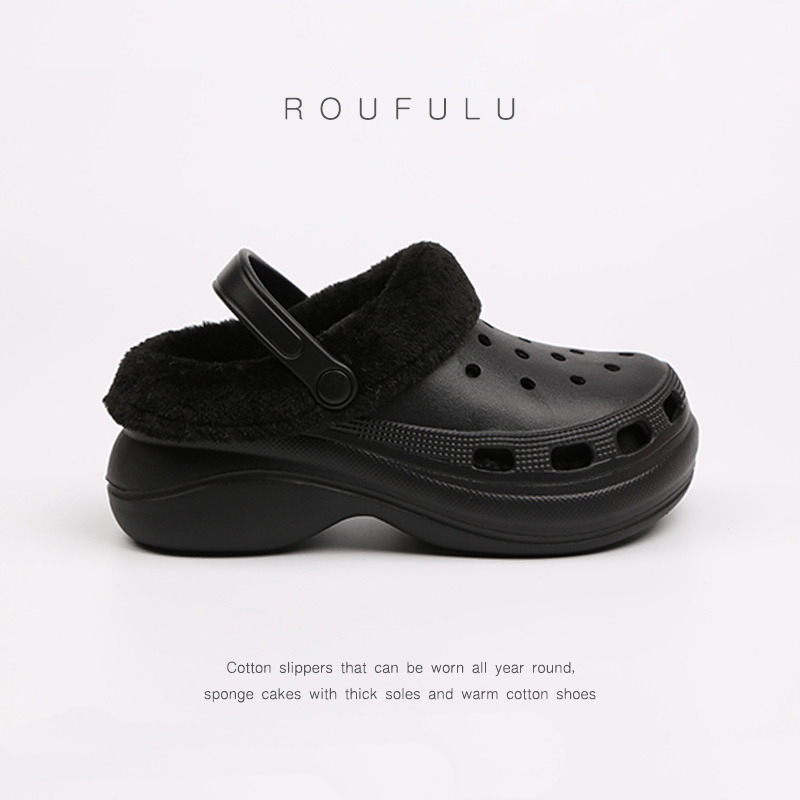 Crocs women’s muffin platform non-slip warm and cotton beach slippers to wear outside